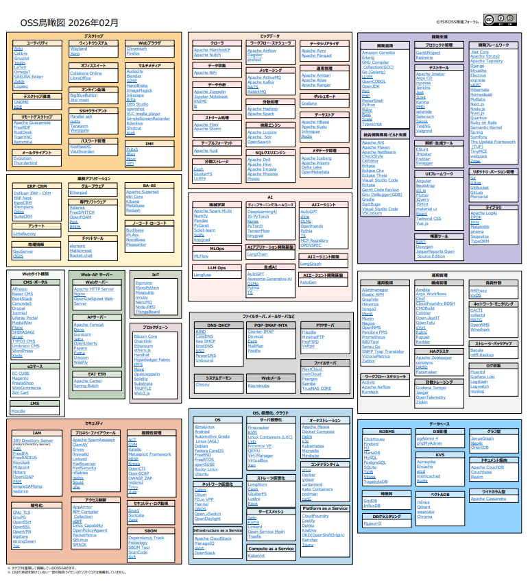- OSS鳥瞰図を最新版に更新し、 OSSの選定をより安心感をもって、かつ短時間にできるよう手助けをする
